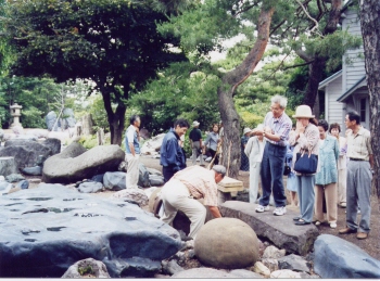 八絋学園は、海外移民のための研修施設として、栗林元二郎氏が昭和五年に設立した農業専門学校です。栗林氏が東京の日本橋三越百貨店で戦後行なわれていた、日本花菖蒲協会協賛の花菖蒲展示即売会で毎年苗を購入し、この学園内に植え付けたのが八絋学園の花菖蒲園のはじまりだそうで、石山様は栗林氏の甥にあたられます。その石山様が学園内にある栗林石庭に案内してくださいました。そこには、何十トン、いえもっとあるかも知れません。そんな驚きのあまり思わず歓声があがるような巨石が、いくつも配置されていました。広大な学園といい、オンコの巨木といい、どうやってここまで運んだのだろうかと思うほどの巨石と言い、何とスケールの大きな方であったのだろうかと思いました。